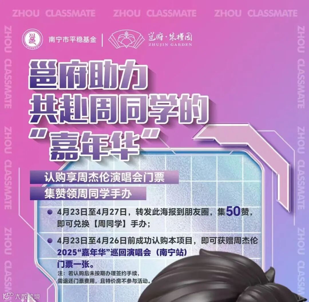 平稳基金表示,旗下楼盘借着周杰伦演唱会推出了赠票和特价房活动小连招,成交了5套房子,赠出5张周杰伦演唱会门票。
