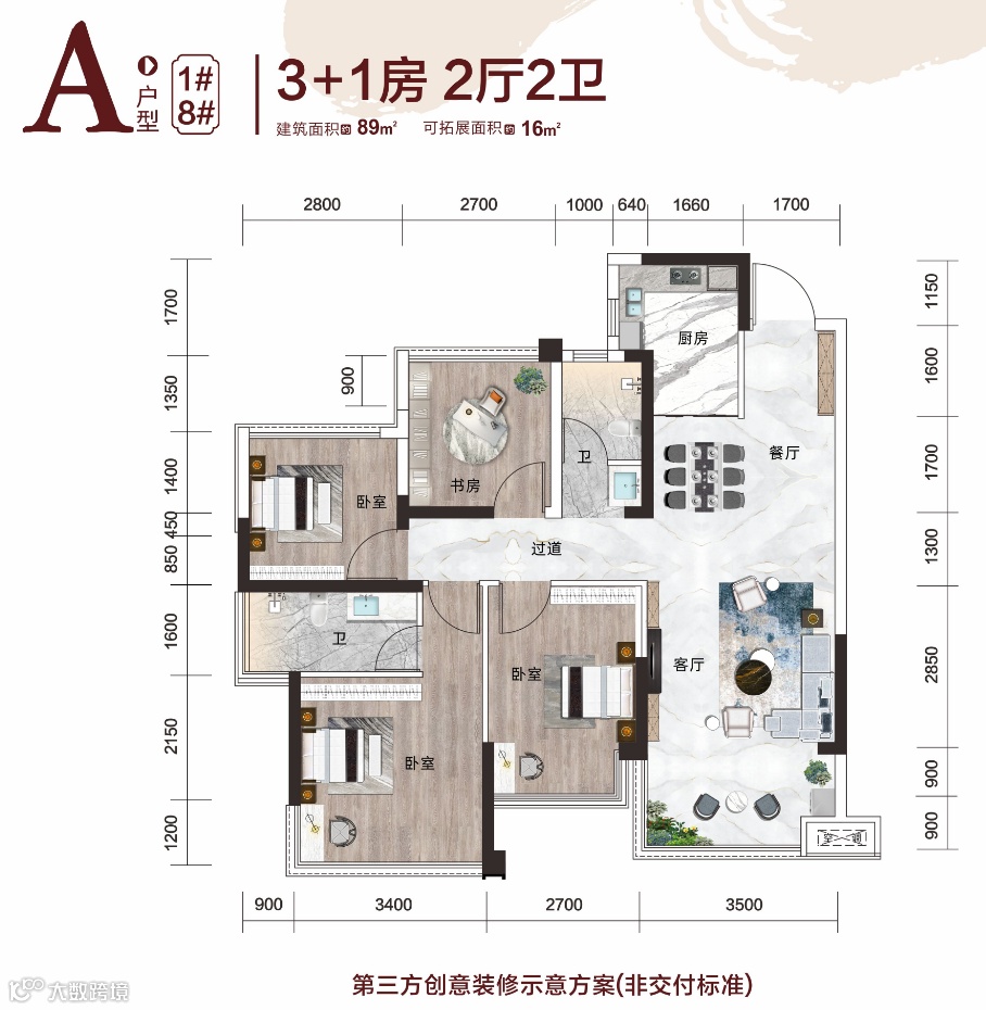 89㎡的紧凑3+1房,很适合一家三口家庭,面积虽然不大,但是4个房间的布局,满足家庭各个功能需求。主卧、次卧、客厅均朝南,采光通风更好。