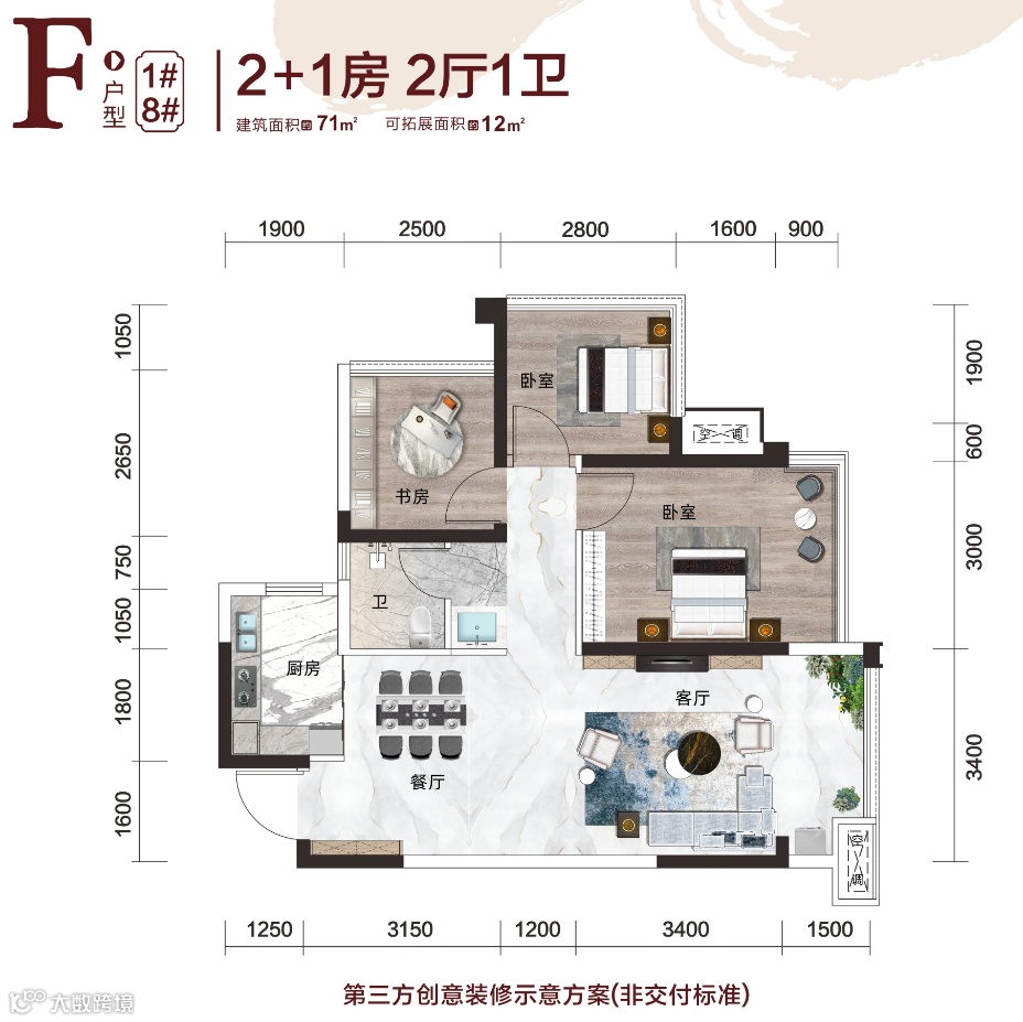 例如,71㎡的2+1房,非常紧凑实用,面积不大,却做到了极致三房,让刚步入社会的年轻人轻松在南宁立足。