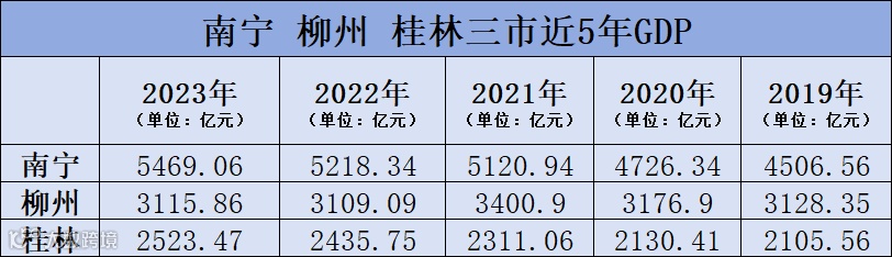 我翻了南宁、柳州和桂林近5年的GDP数据,南宁与柳州和桂林逐渐拉开差距,形成了“532”梯队。