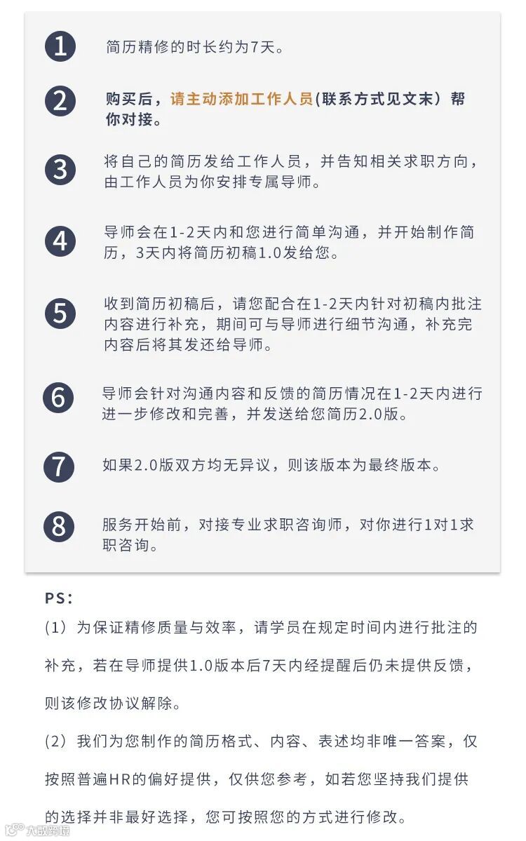 仅提供简历诊断、修改意见,不代笔修改;300元提供超长待命的详尽服务,性价比唯一。