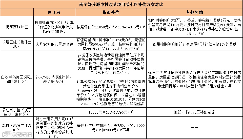 具体看,各个城中村的拆迁补偿方案对比如何?拆迁户们都得到了多少补偿?有多少现金?究竟是该拿钱好还是拿房好?