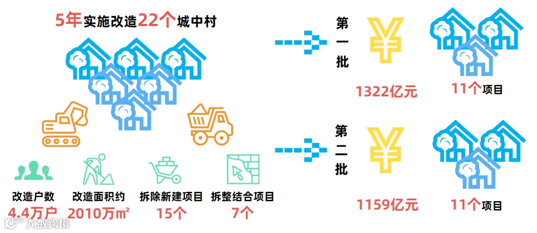 南宁市住房和城乡建设局通过调查摸底和经济测算,已梳理出第一批城中村改造项目11个,总投资1322亿元;第二批城中村改造项目11个,总投资1159亿元。22个项目中,涉及改造户数4.4万户,改造面积约2010万平方米,拆除新建项目15个,拆整结合项目7个。