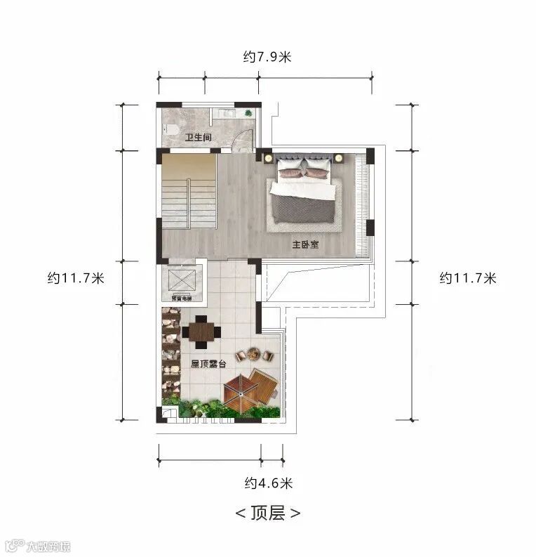 樾园171平米的边套别墅附带的院子面积达283㎡!左前方,在树下设置了露营区↓↓