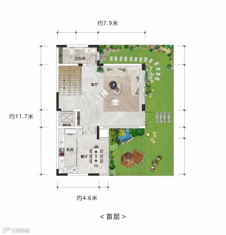 别以为只有地下室空间大,既然是合院产品,院子也得大才能名副其实。