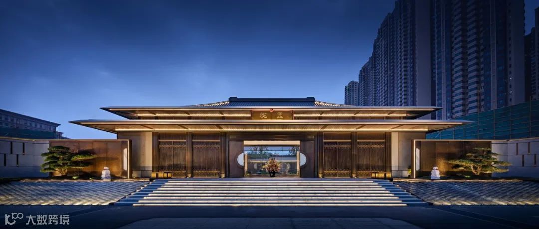 宽约66米 、高16米的五开三启大门,屋顶采用了如故宫太和门、保和殿、乾清门等古典建筑同款的重檐歇山顶设计,造型上给人一种文物的气质。
