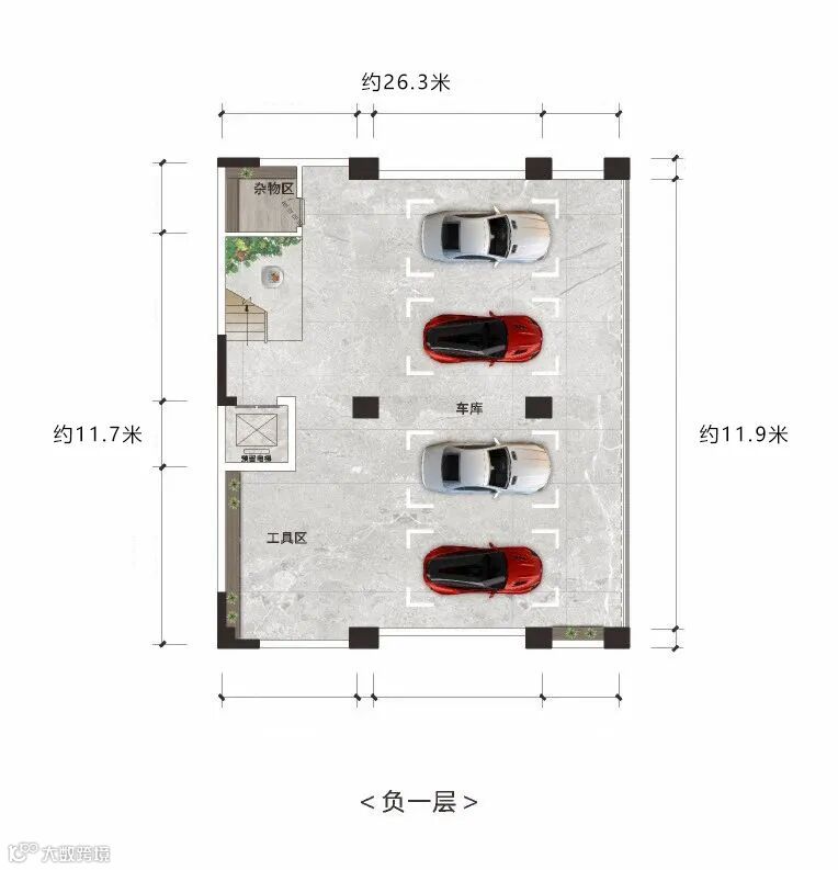 如负一层的超大开间,足够停放4台豪车,像一个小型的车行一样。能买这种豪宅的人,家里怎么可能只有一辆车?