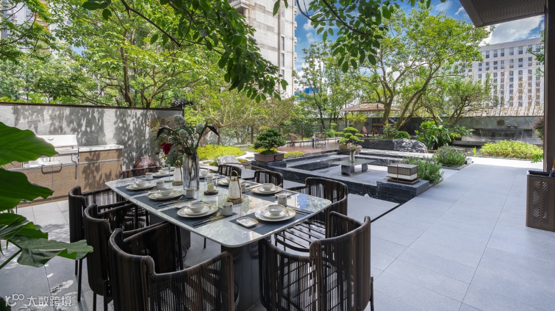 左后方,还藏着一个闹中取静的茶室,右边区域是用餐区,可以在自家院子就可以做露天的BBQ↓↓