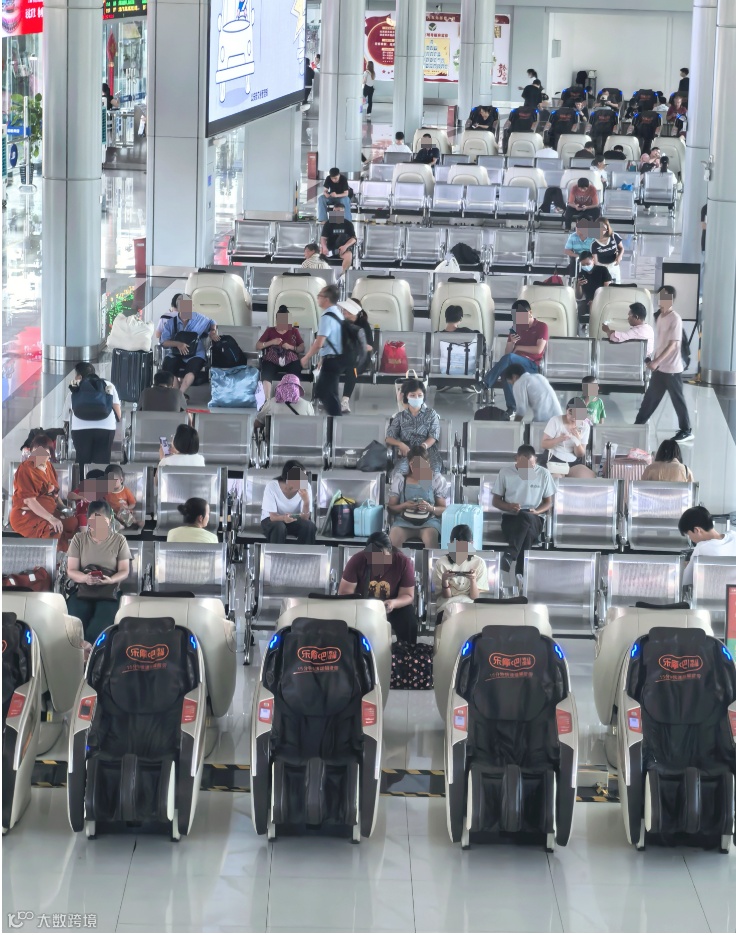 很多候车座椅虚位以待,很多旅客仿佛没有从口罩时期的习惯中走出来,严格执行着间隔就坐的遥远倡议。