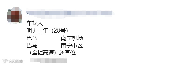 群成员分作两类,一些是专门或者时常在某一条路线上往返载客的非营运的私家车的车主,他们非常活跃,每天按照群主约定的格式发布“车找人”信息;另一些则是乘客,他们偶尔也会发“人找车”的信息。