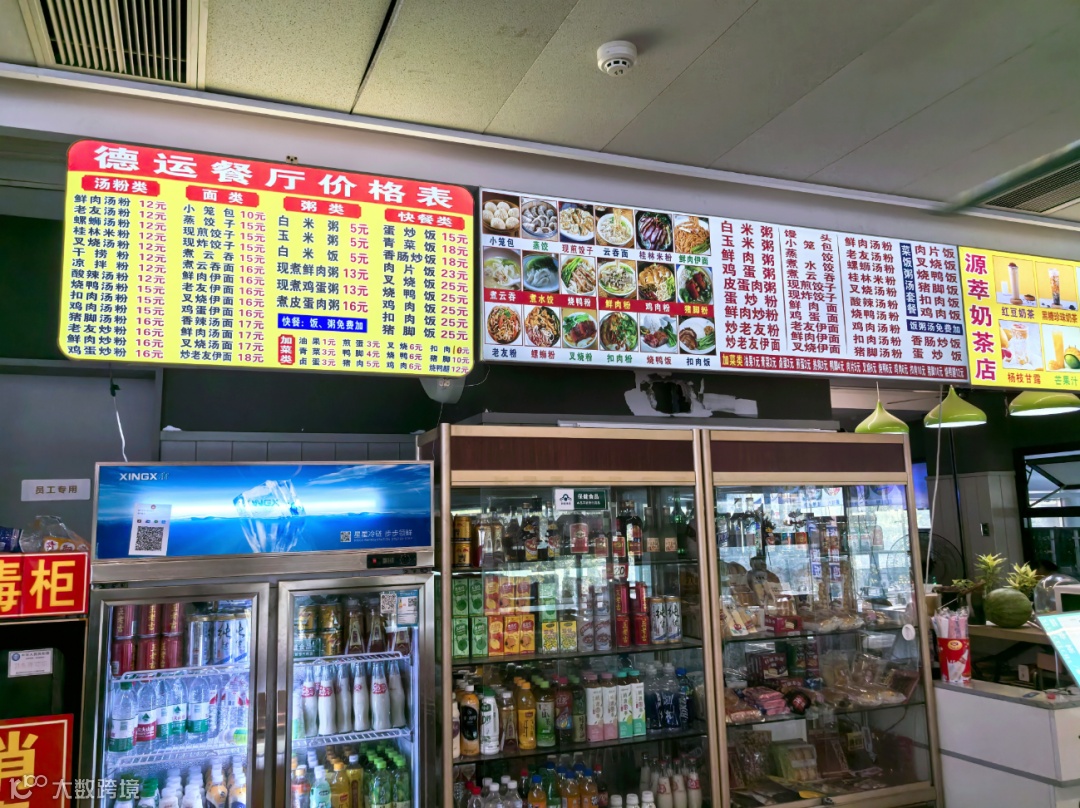 楼上的德运餐厅还在正常营业,但店内食客很少,而靠近公交停车场的美食坊,空空如也。西侧的候车大厅入口仍未开放,几块广告挡板上还保留着疫情防控的内容。