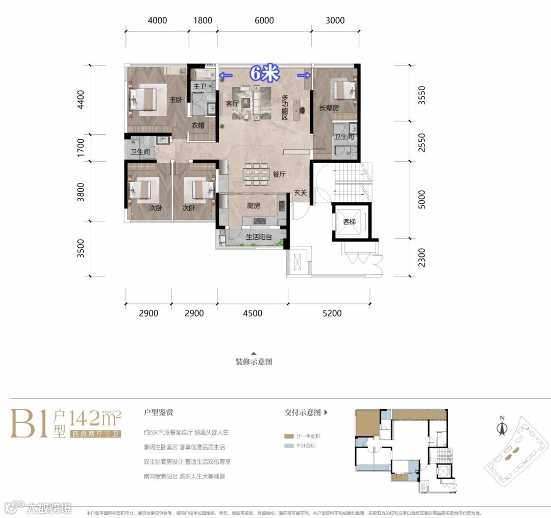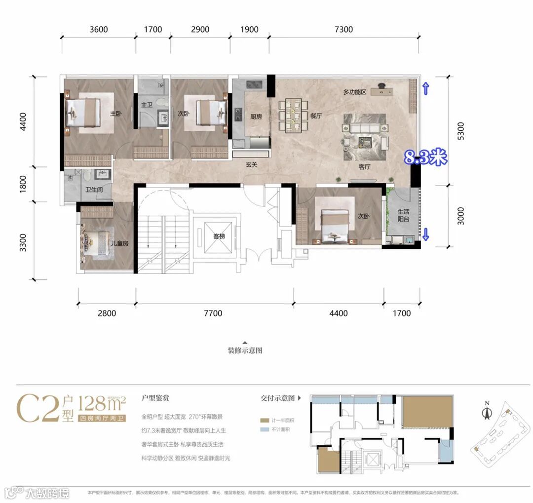 项目所有户型都有一个私家电梯前厅,提升仪式感的同时,也大大提高了得房率和采光度。