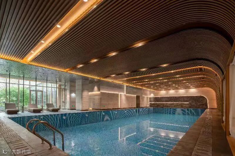 这是会所内的恒温泳池,采用了宝格丽设计风格,肉眼可见的高端、大气。