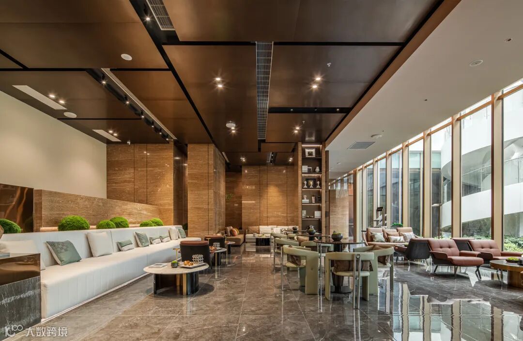 区别于很多豪宅“中空LOW-E玻璃+铝板”的造型,项目选择“中空LOW-E玻璃+弱边框设计”,最大程度释放玻璃的美。