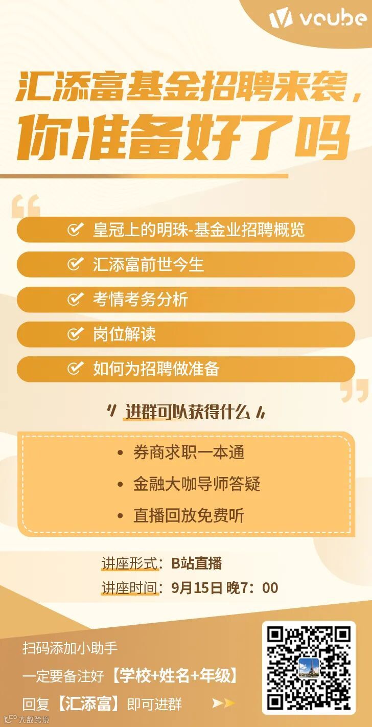 汇添富基金添才计划已经开始,感兴趣的同学先来看看招聘详情吧!