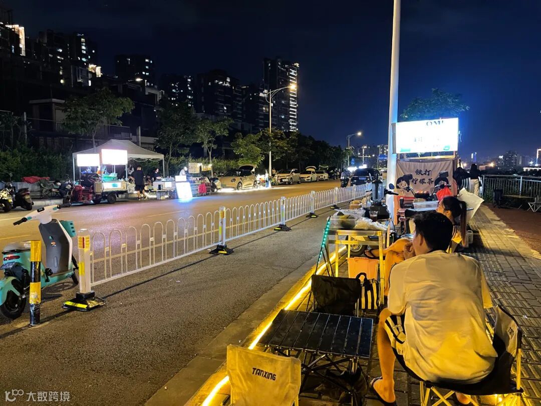 从昙花一现的楞塘村夜市开始,地摊在五象已逐渐呈遍地开花之势。就连五象一些还不算特别成熟的居住区周边,地摊也摆得很成熟了。有些路段,路灯不亮的时候,全靠一个个地摊的LED灯接力照亮走夜路的行人的前程。