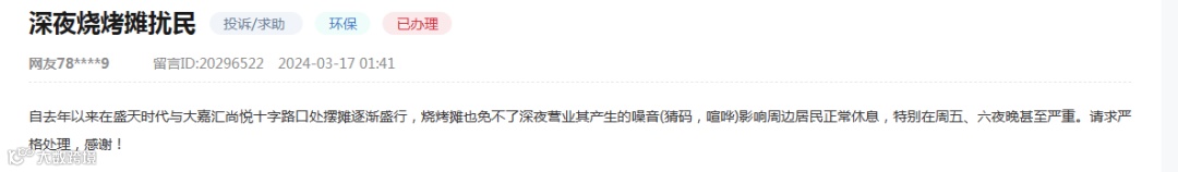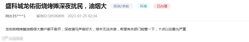 打开人民网领导留言板块,搜索关键词,我们发现有大量网友投诉烧烤摊油烟扰民。
