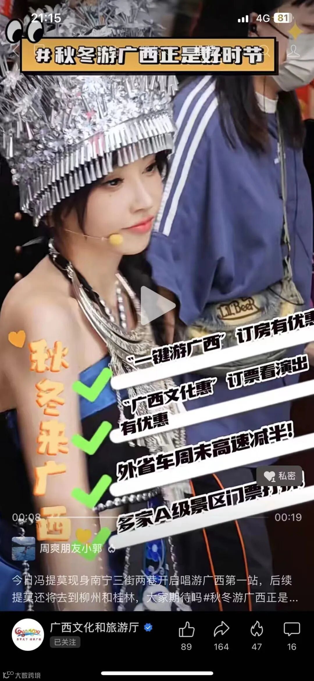 刚刚刷了下广西文旅厅官方微信公众号,看到常有有蹭热度的小视频,看来“00后”是真上岗了。