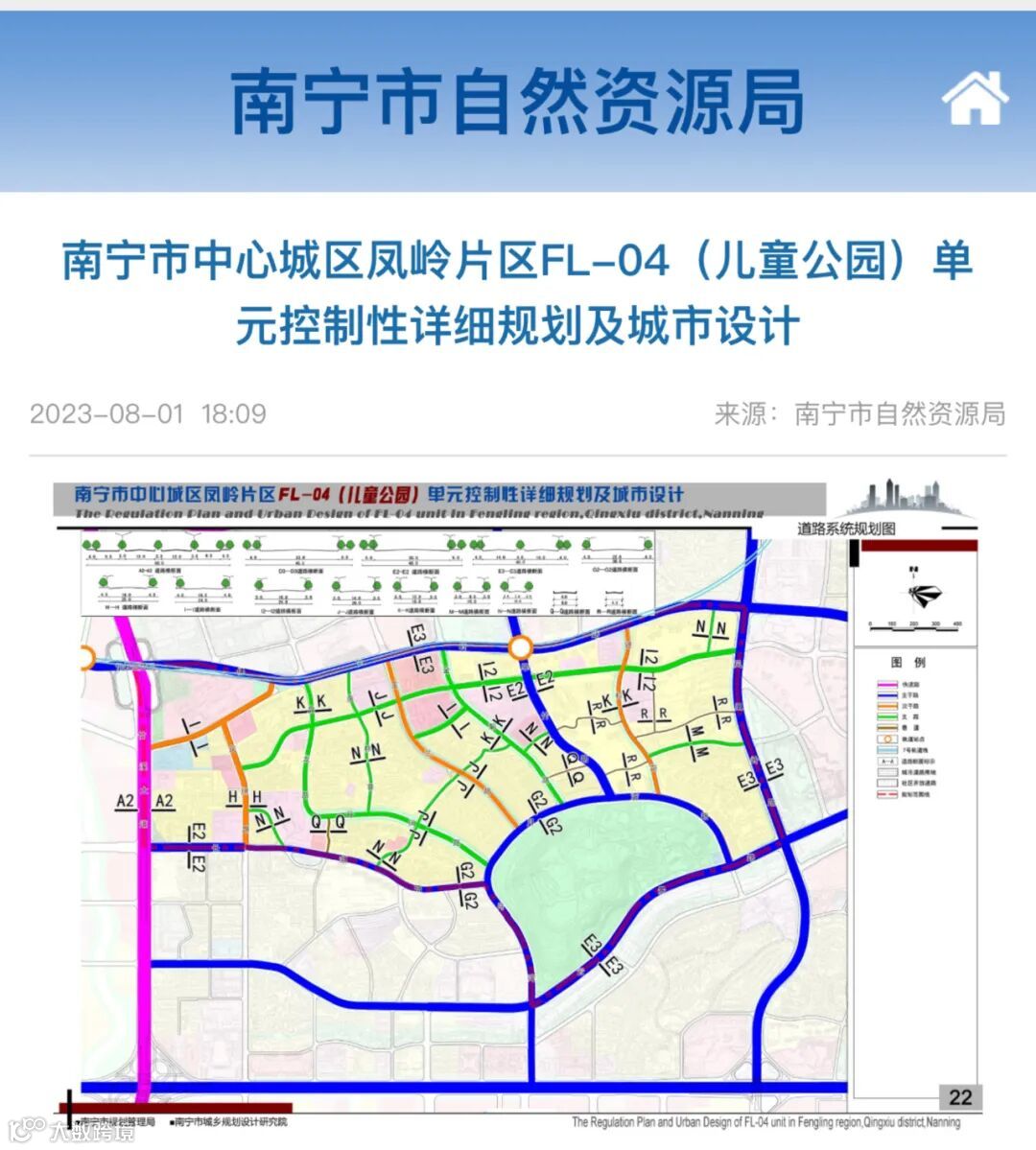 8月1日,南宁市自然资源局发布了凤岭片区(儿童公园)单元控规,其中,一张凤岭片区道路系统规划图上,7号线不仅有了姓名,还有了大概的线路: