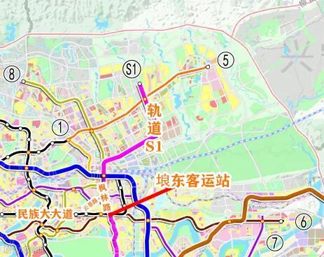 这个公示透露了一个信息,即轨道S1机场线沿枫林路从单元东侧穿过,并在单元东侧设置埌东客运站站和云景路站两个站点。