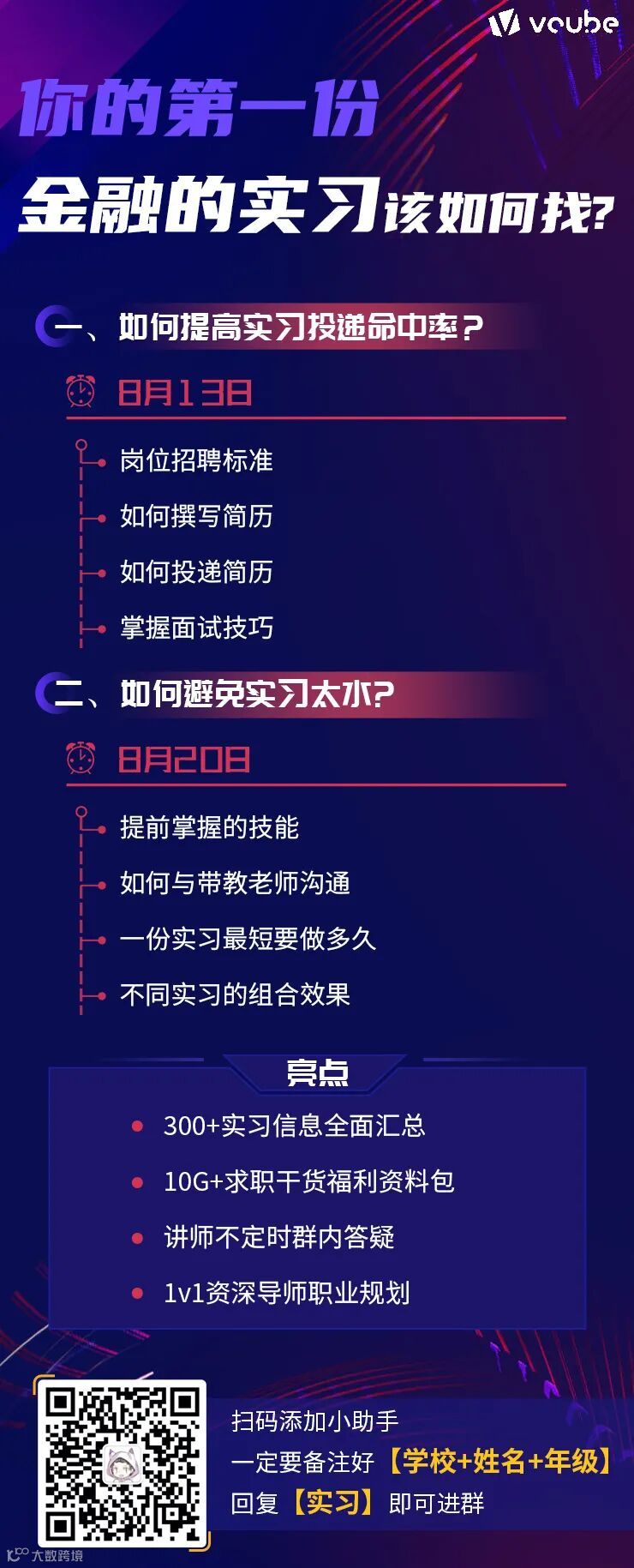想做金融的同学,大家肯定是知道“实习很重要”这个道理的,也了解“实习要趁早”。