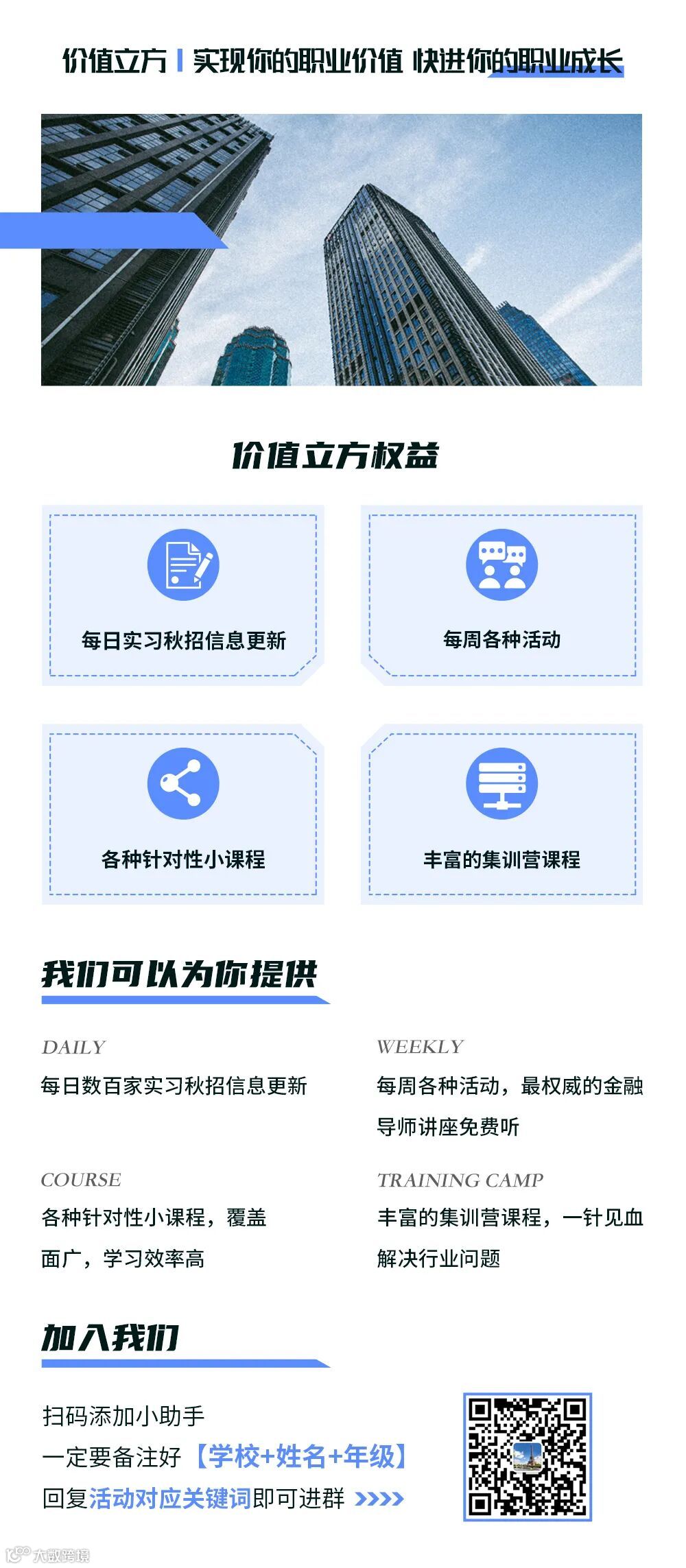 只面向2020.1--2021.6期间毕业的应届生,有志于从事金融业,国内985/211或海外顶级名校硕士及以上学历;