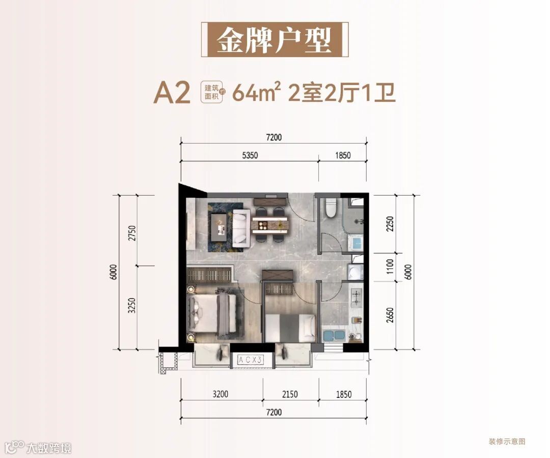 ▲64㎡户型样板间