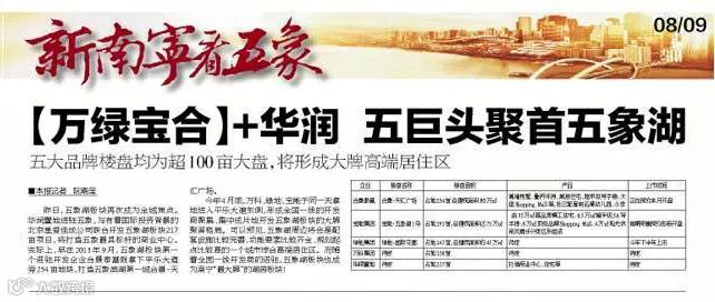 在往后的报道里,我在原来的五象湖四大巨头后面,最后加上“华”,南宁楼市当年的“带头大哥”,华润置地压轴出场了。