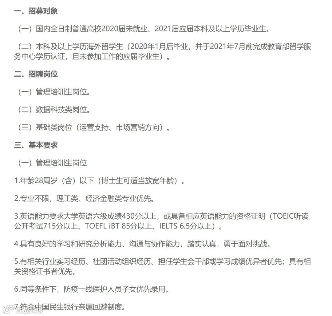民生银行的秋招它来了!