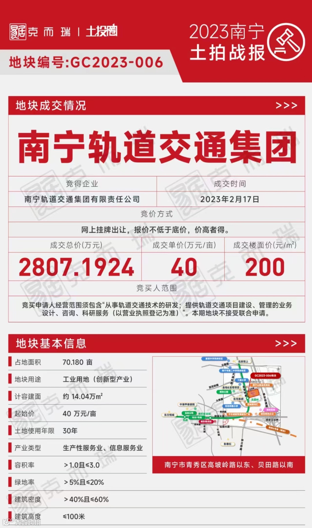 另外,今年2月17日,轨道拿下高坡岭路70多亩的产业用地,将用于创新型产业建设。