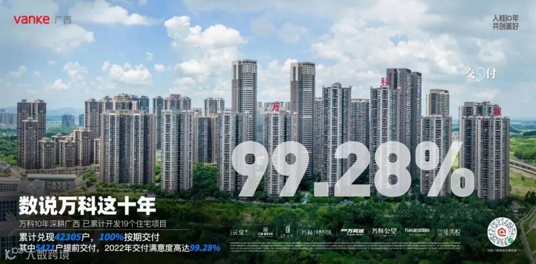 万科进入广西10年,至今已累计开发19个项目,累计为42305户业主兑现了100%如期交付,交付满意度高达99.28%。其中,有5421户提前交付。