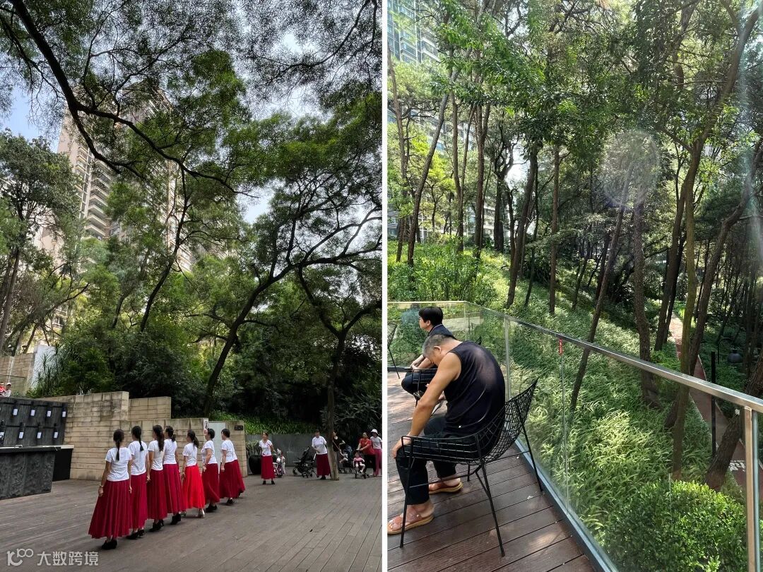 交付当天,看到万科城业主的生活和很多小区还是有所不同的,有业主在原生山林间跳舞,也有业主在原山树林里晒太阳。一个有温度、有意思的社群氛围。