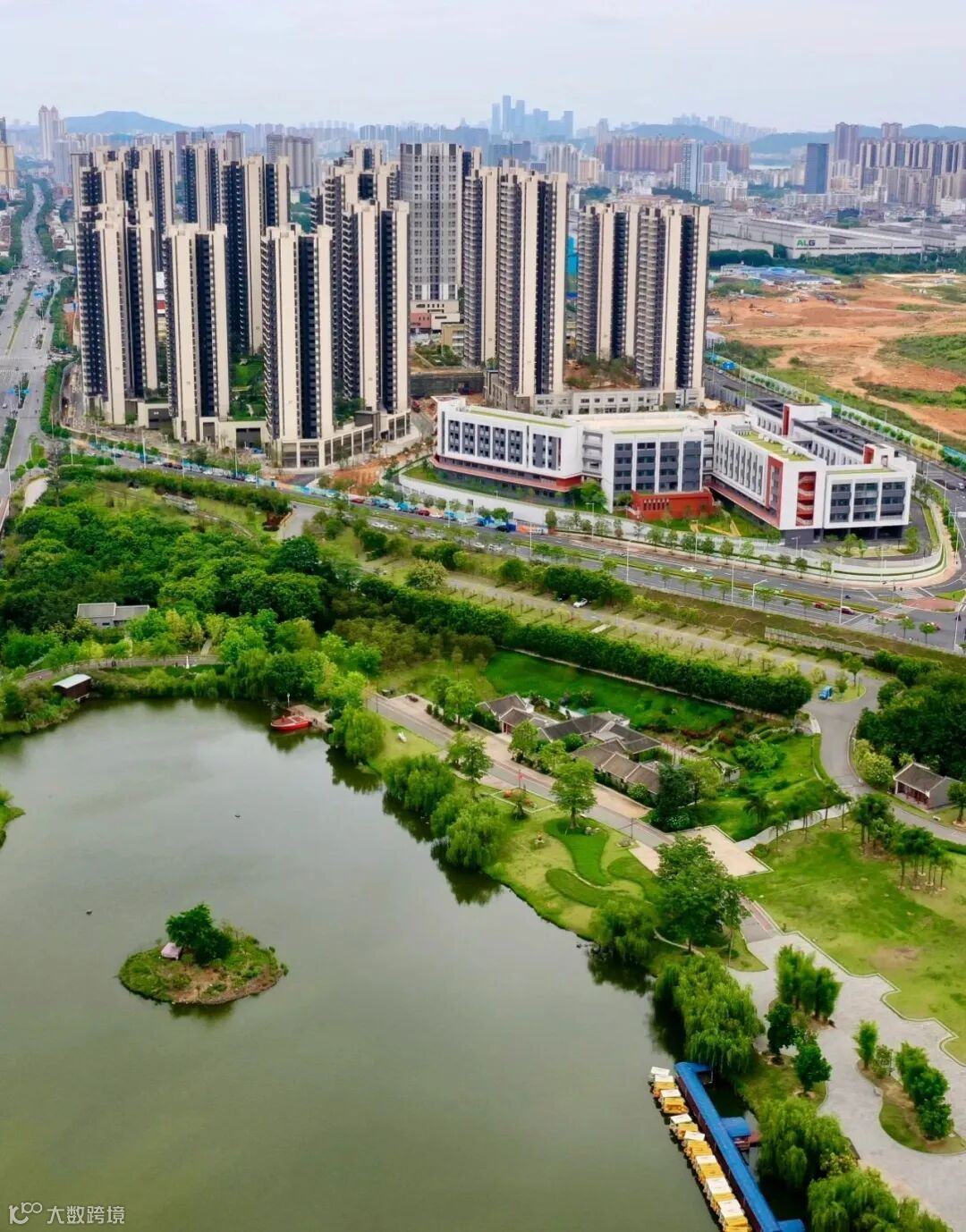 ▲学校旁就是江南公园