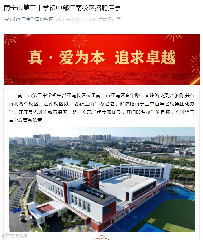 ▲三中初中部江南校区实景图