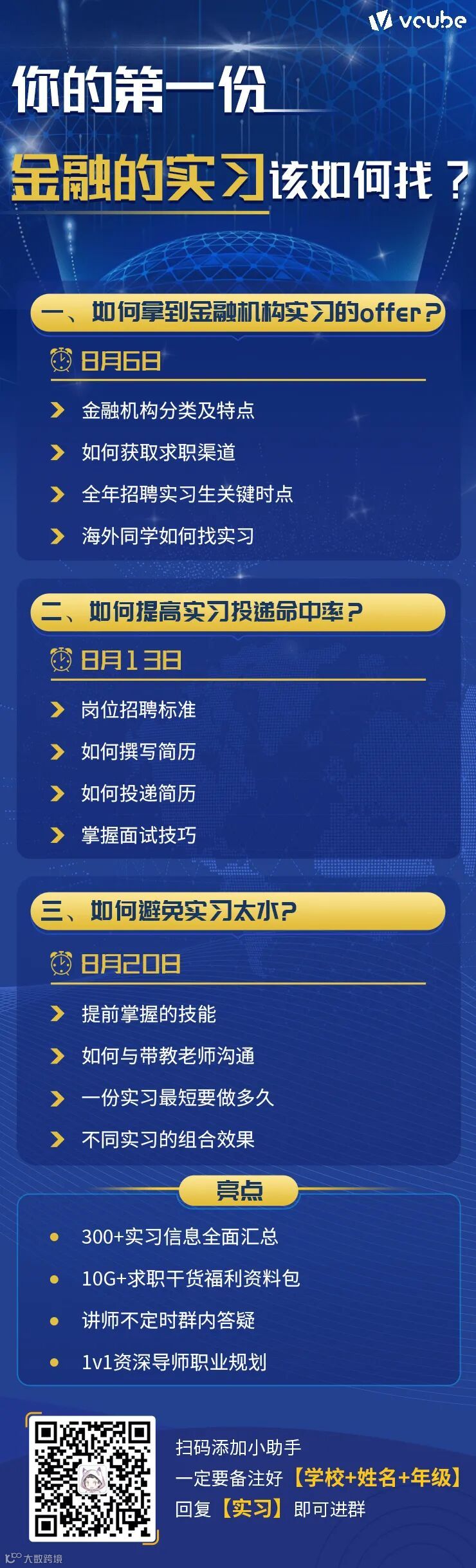 为了帮助同学们在实习前对金融行业有更多的了解,更多地获知金融行业的职业发展,将在新人实习群给大家做专题讲座,帮助你抓住更多的机会。
