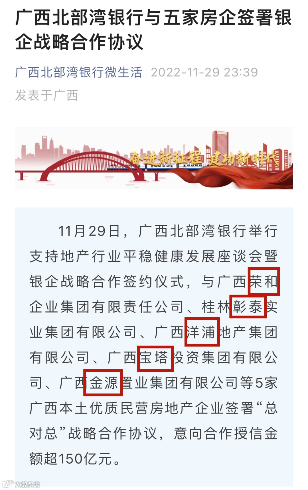 在这岁暮天寒的冬天里,广西本土民营房企等来了广西本土银行的橄榄枝: