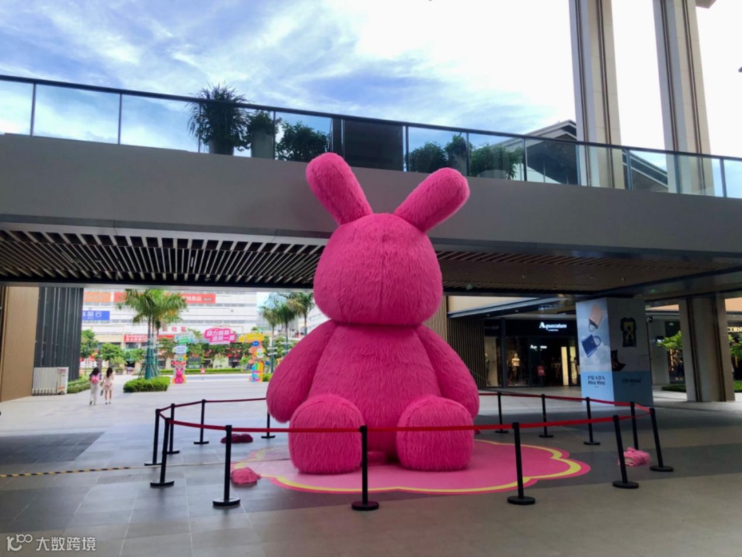 新中式的设计风格,属于耐看型。在商场的2号门还放了一只超大的粉色兔子,不少人在这里打卡。