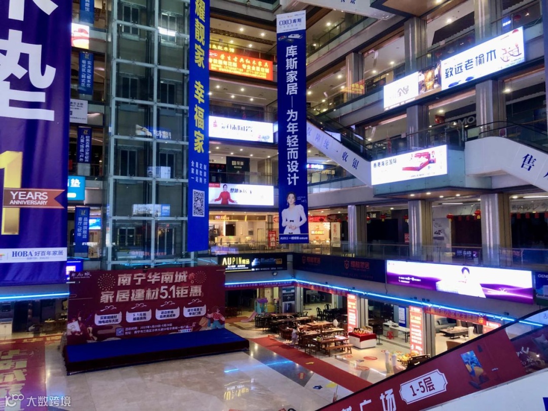 但商场也是不温不火的状态,加上华南城是中国-东盟商贸物流中心,偏向家居建材、汽车、五金、物流等大宗商品交易,来逛街的人是比较少的。