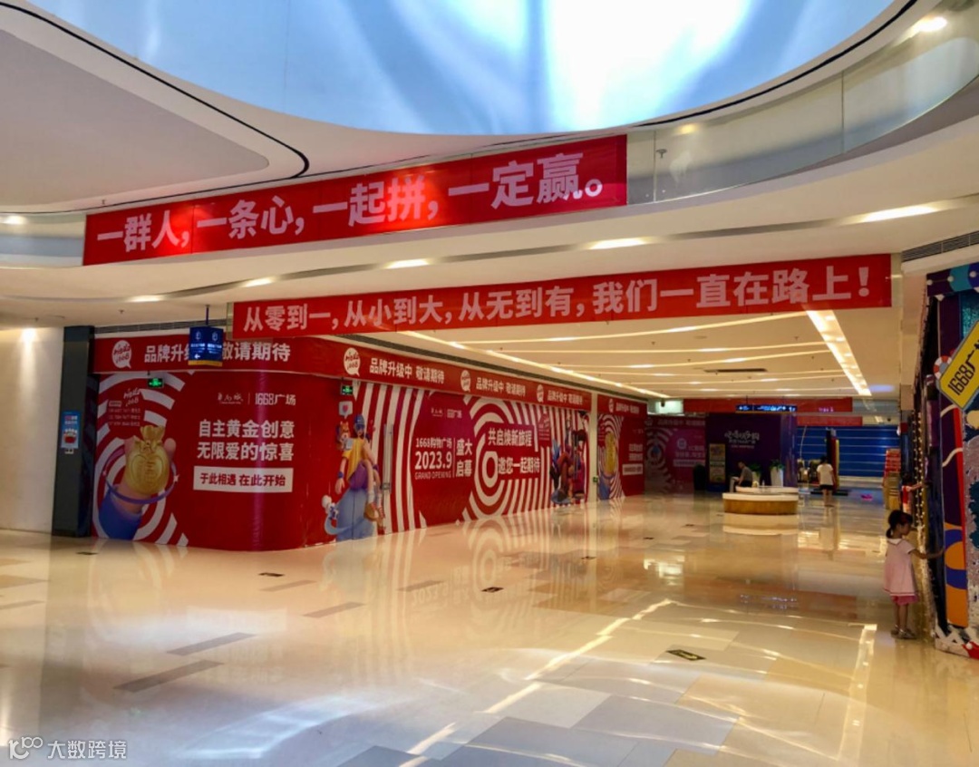 小花先去的1668购物广场,有些意外,广场周边贴着2023年9月盛大起航的海报,是在启动招商。
