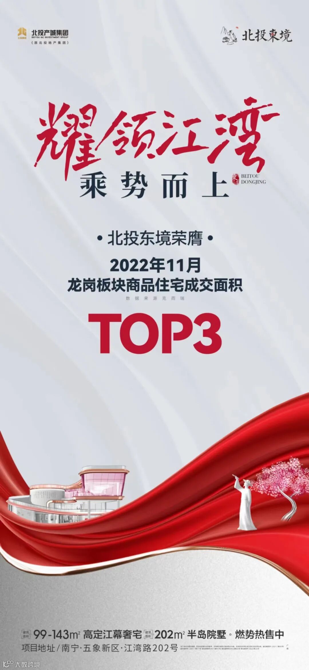 先看北投时代,这个从年头红到年末,甚至可以说是从出生红到当下的楼盘,在没有名校加持的去年就成为五象商品住宅的销冠,今年有了“三美”名校加持后更是当红不让,继续夺走2022年1-11月的销售桂冠。