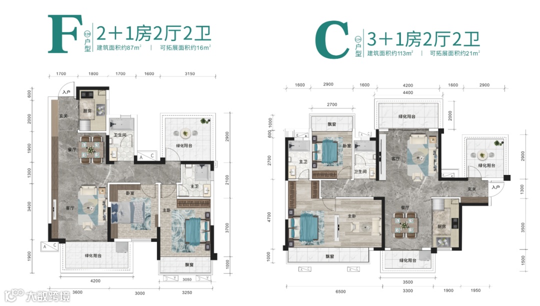 再看下恒力城的户型送得多大方:约87平米户型赠送约16平米,可做到3房2厅2卫;约98平米户型,赠送面积接近19平米,可做到3+1房2厅2卫;约113平米的户型,赠送21.3平米,做到3+1房2厅2卫,还带南北对流双阳台!