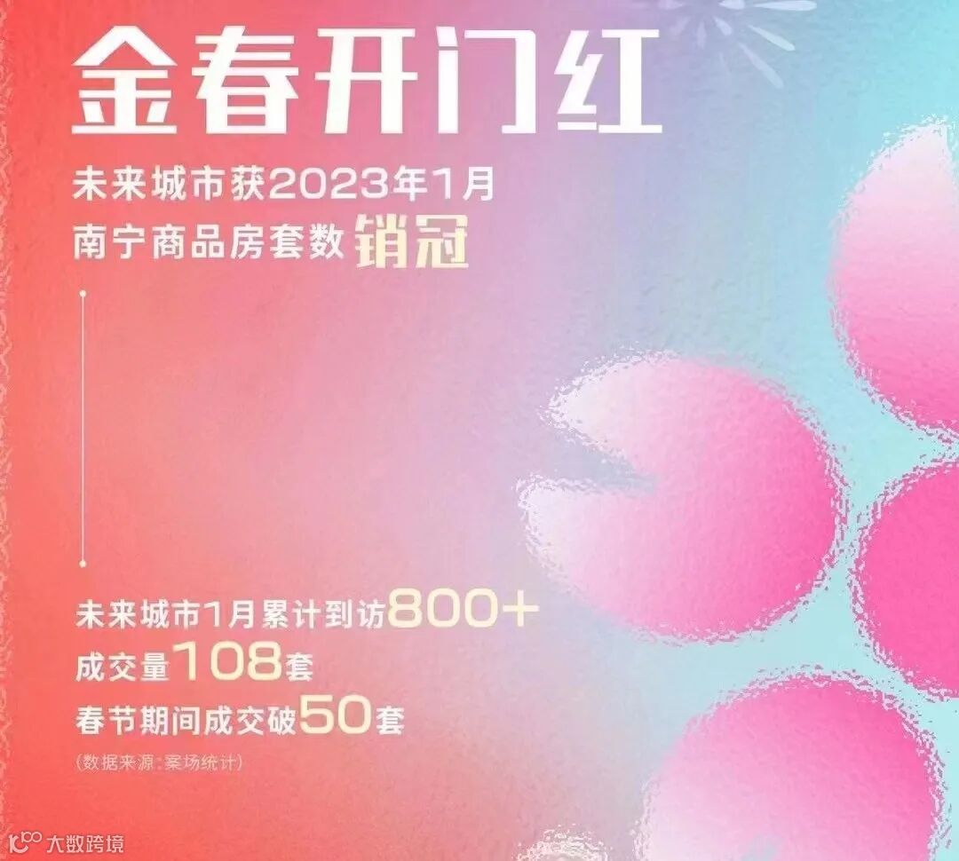 华润置地南宁项目卖出了1.5亿+的销售额,其中,华润置地位于江南的未来城市项目,春节期间成交突破50套,1月份累计到访量800+,成交量108套。