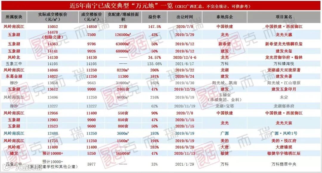 所以我们看到今年以来南宁市成交经营性用地的拿地房企,男主角都变了,均为广西本土国企和本土民企。