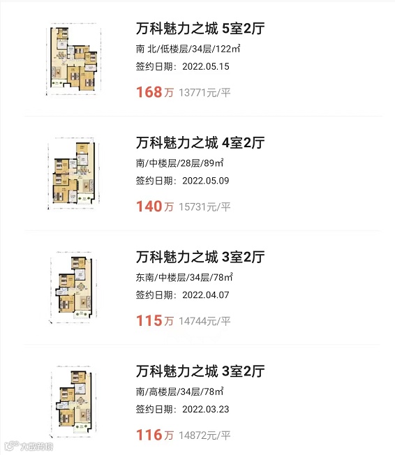 (龙岗一二手门店挂出的价格:同一个小区,大户型价格比小户型更加坚挺)