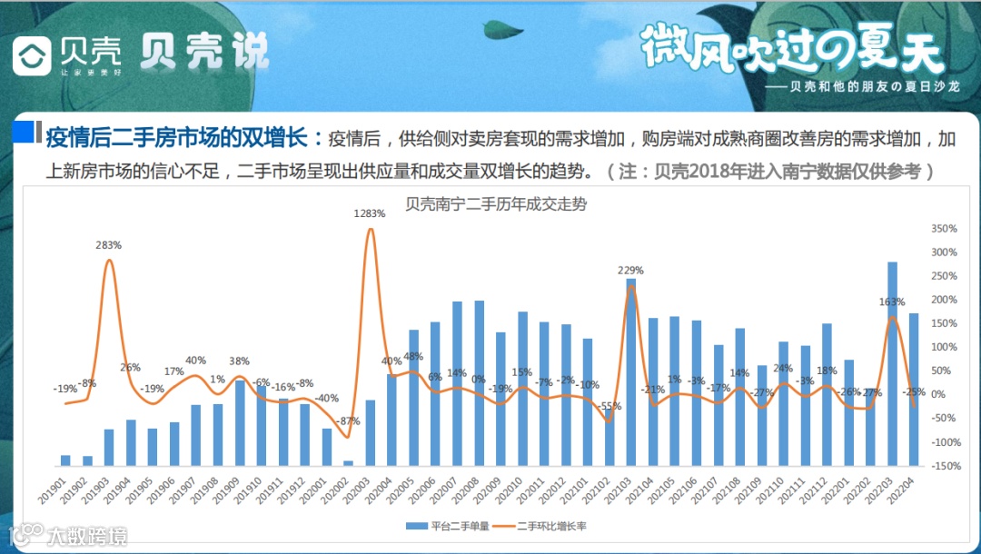 最近和几位中介聊天了解到,二手房市场有明显的回头势头。根据贝壳找房的数据来看,今年以来,南宁二手房供应量和成交量整体稳步攀升。