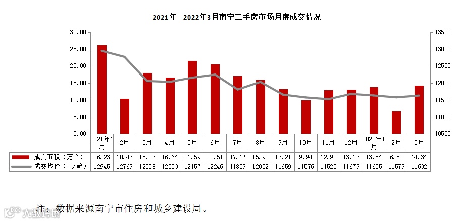 数据显示,南宁二手房整体均价已由2021年年初约1.3万元/㎡下调至近期约1.15万元/㎡,降幅约11.5%。