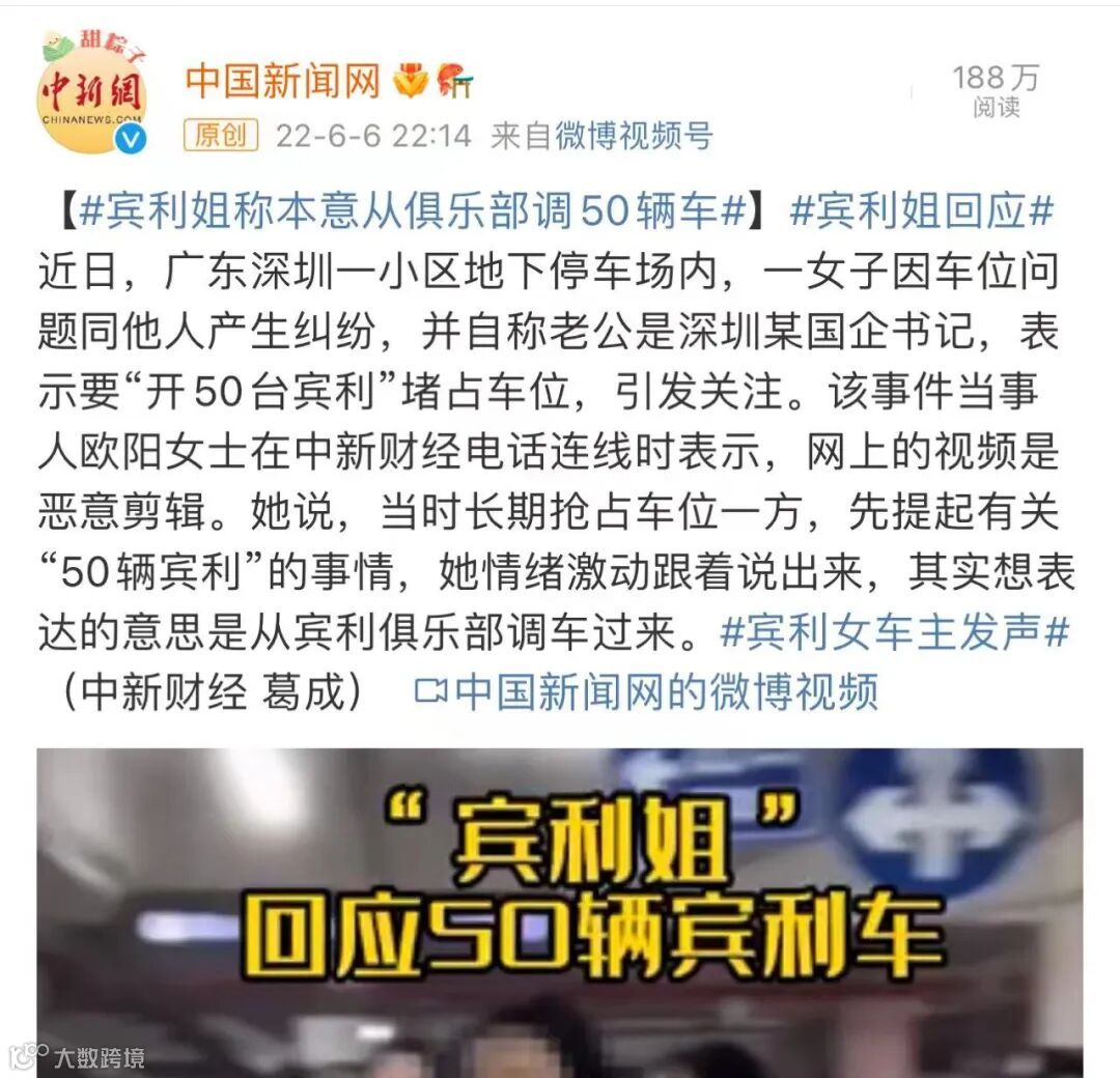 原因想必你已经知道了——此番攻防两方都是开着豪车的富人,一人开宾利,一人开劳斯莱斯,富人之间的争斗,历来吸睛;更关键的是,开宾利的女选手的言论很爆炸,自称深圳某国企书记夫人,“家有50辆宾利不用”、“把澎湃新闻给我调来,深圳卫视给我调来,请市长到这来”……