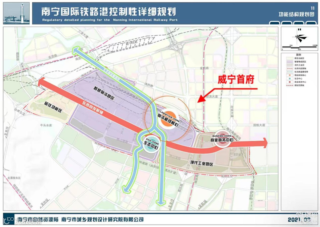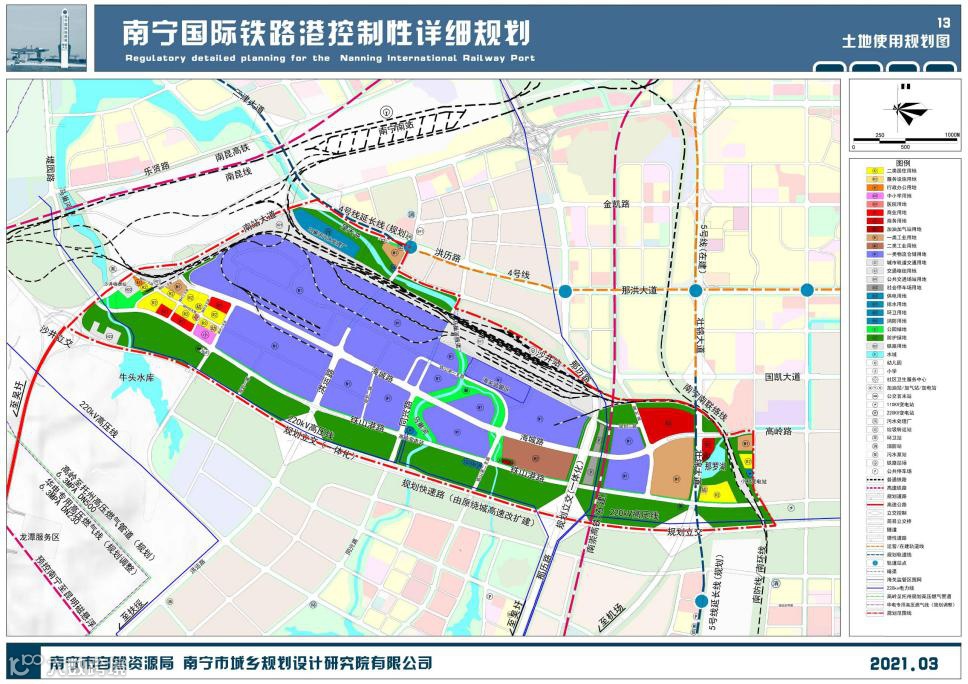 11月13日,南宁市自然资源局公布《南宁国际铁路港控制性详细规划》已获南宁市人民政府批复。《南宁国际铁路港控制性详细规划》规划范围为绕城高速、南站大道、洪历路、洪运路、国凯大道、南环线(铁路)、沛友路所围合区域,总用地面积约965.19公顷(14477亩)。