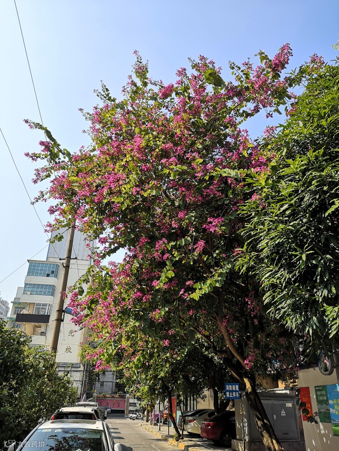 大院里种着很多羊蹄甲,大部分都开了满满一树的花,有的还挂着一串串豆荚一样的果实。这种植物花期长达半年之久,可见“花无百日红”的说法并不准确。