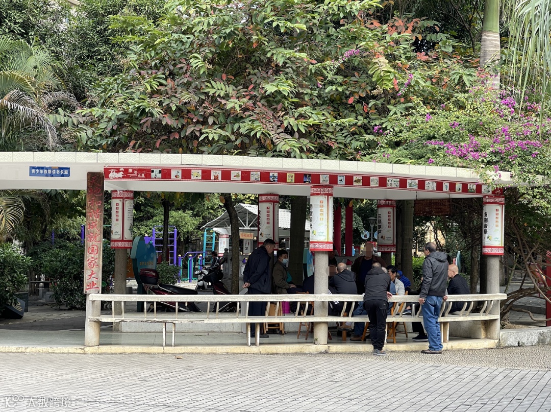 在小区里走动,你可以看到很多“邻里守望点”,一把大大的伞蓬下面,摆有桌椅,几个老人围在一起,打麻将、玩拖拉机,不亦乐乎。